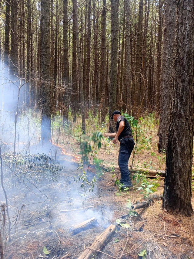 MISIONES.UNO – En Corpus, efectivos de la Comisaría local junto a bomberos de la Policía y bomberos voluntarios continúan trabajando de manera conjunta para extinguir un incendio que se originó en un lote de pinar, afectando aproximadamente una hectárea.