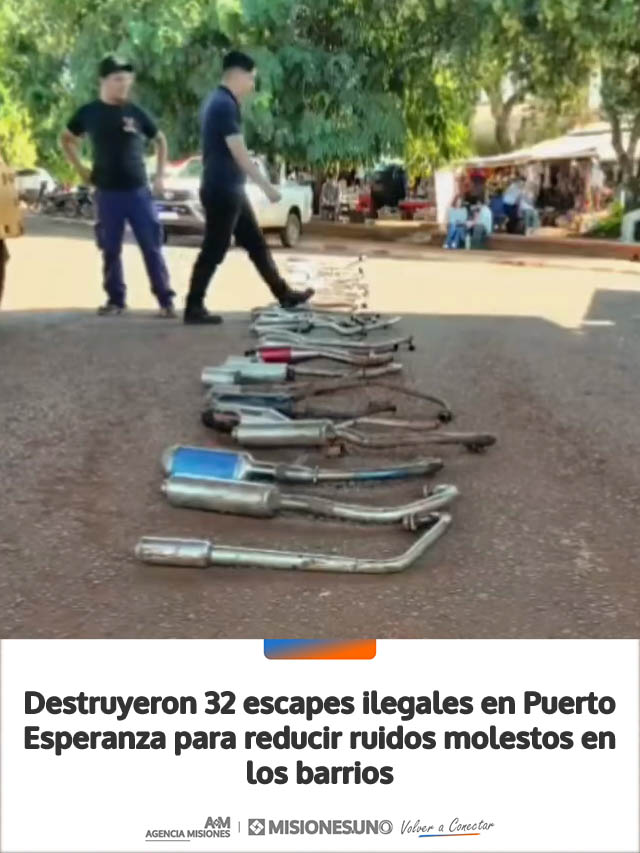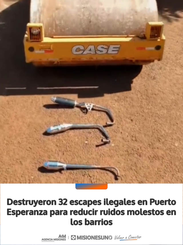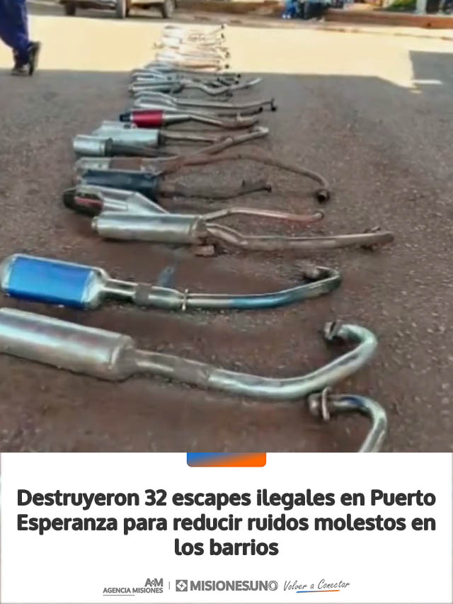 Este jueves, cerca de las 11 horas, se llevó a cabo la destrucción de 32 escapes adulterados en Puerto Esperanza, en cumplimiento de una resolución del Juzgado de Faltas local, en el marco de la Ley Nacional de Tránsito N.º 24.449.