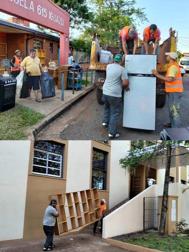 AGENCIA MISIONES.UNO | El equipo municipal acompañó el inicio del ciclo lectivo en la Escuela Sudamericana N° 746 mediante tareas de colaboración y traslado de mobiliario escolar, con el objetivo de garantizar espacios adecuados para la comunidad educativa.