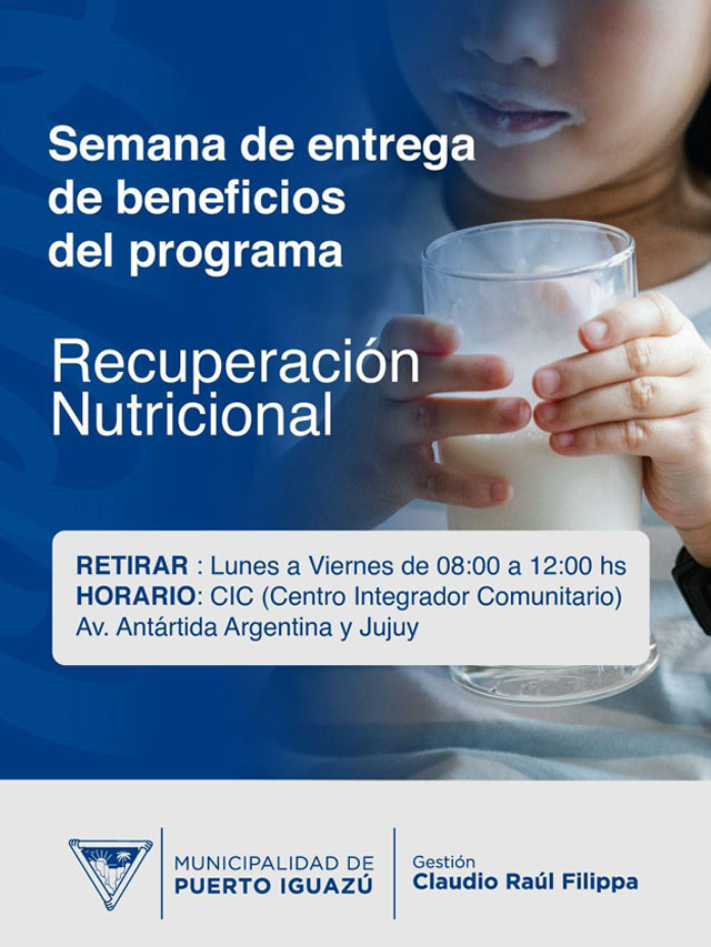 MISIONES.UNO – En Iguazú, la Secretaría Municipal de Acción Social informó que ya están disponibles los beneficios del Programa de Recuperación Nutricional, destinado a acompañar a quienes más lo necesitan.