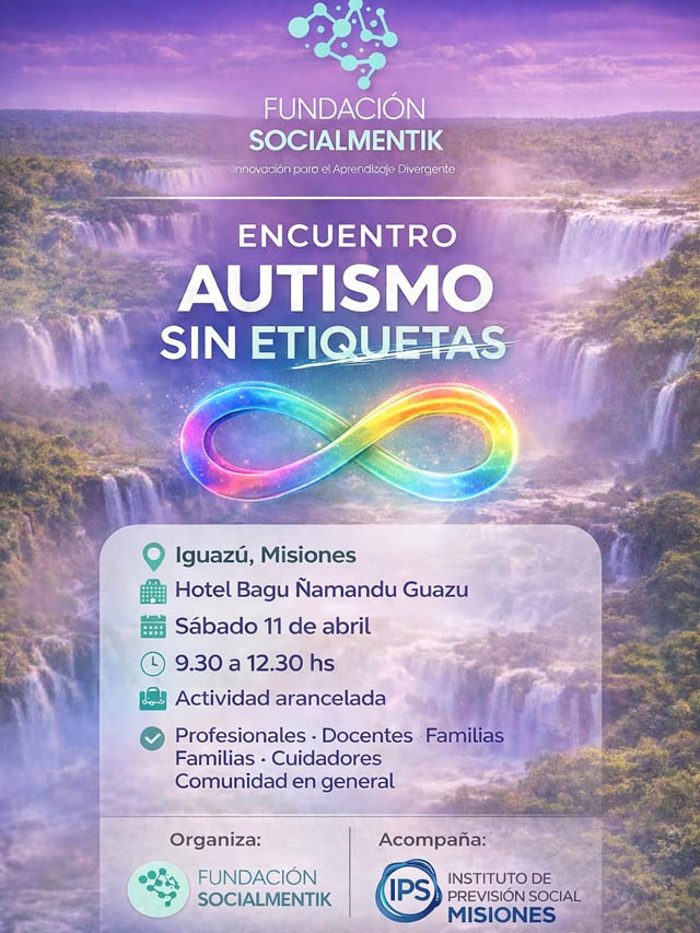 En el marco del Mes de Concientización sobre el Autismo, la Fundación Socialmentik realizará en la ciudad de Puerto Iguazú el encuentro “Autismo sin Etiquetas”, un espacio de formación y reflexión destinado a profesionales, docentes, familias y a la comunidad en general.