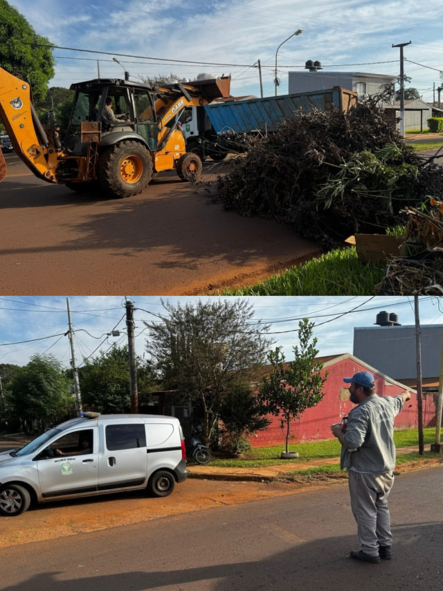 AGENCIA MISIONES.UNO | La Secretaría Municipal de Obras y Servicios Públicos de Puerto Iguazú llevó adelante este lunes trabajos de recolección de ramas, malezas y residuos acumulados en la vía pública en la intersección de las calles Ignacio Abiarú y San Martín, con el objetivo de mantener el orden y la salubridad en el espacio urbano.