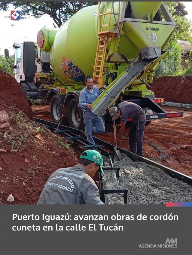 AGENCIA MISIONES.UNO | El municipio de Puerto Iguazú continúa con trabajos de infraestructura urbana mediante la construcción de cordón cuneta sobre la calle El Tucán, con vistas a futuras obras de empedrado.