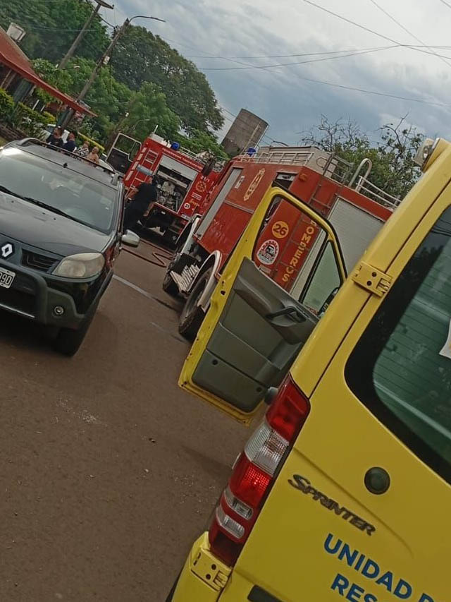 Este lunes 24 de febrero de 2026, a las 15:47 horas, la guardia de Bomberos Voluntarios de Puerto Iguazú recibió una denuncia por parte de una vecina que alertó sobre un incendio estructural en el barrio 120 Viviendas del IPRODHA.