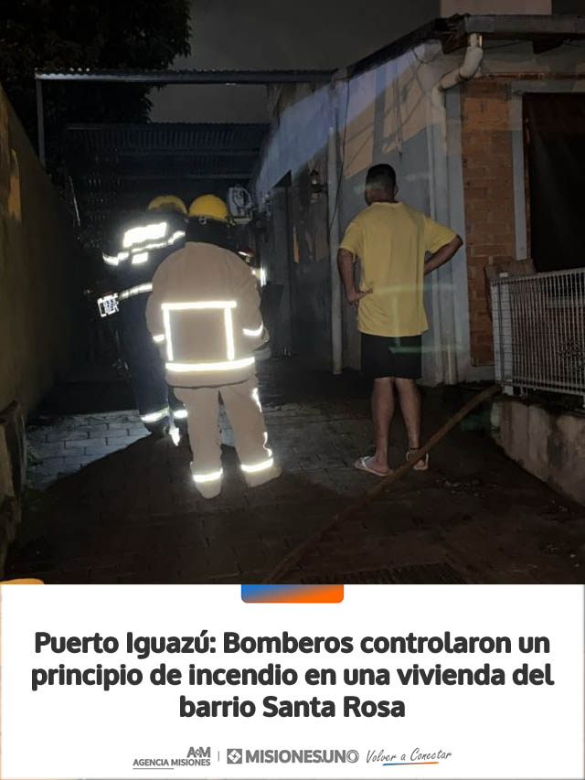 En la madrugada de este domingo 26 de abril, alrededor de la 01:30 horas, la Guardia de Bomberos Voluntarios de Puerto Iguazú fue alertada sobre un principio de incendio en una vivienda ubicada sobre la calle Girasoles, entre Petunias y Valerianas, en el barrio Santa Rosa.