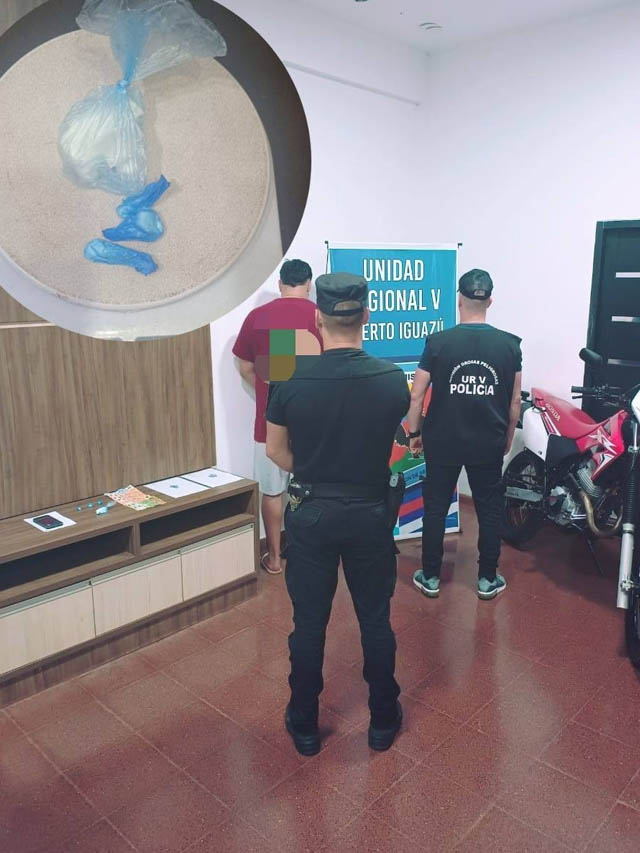 Puerto Iguazú: detuvieron a un joven con cocaína, dinero en efectivo y una motocicleta sin documentación