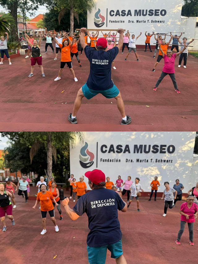 Como parte de la propuesta, cada mes se organiza una salida especial. En la jornada más reciente, el grupo realizó actividades en la Casa Museo Fundación Dr. Marta T. Schwarz, integrando ejercicio y cultura en una mañana diferente.