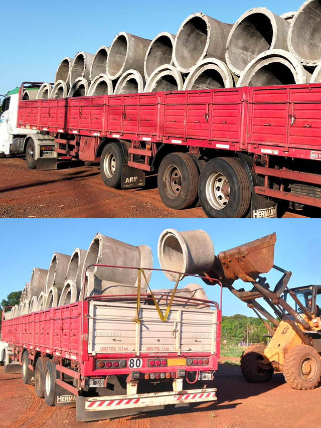 AGENCIA MISIONES.UNO | La Municipalidad de Puerto Iguazú sumó 200 tubos de hormigón de un metro de diámetro en el marco del Plan Integral de Entubamiento para el mejoramiento de desagües, que serán instalados en el barrio Villa Tacuara.