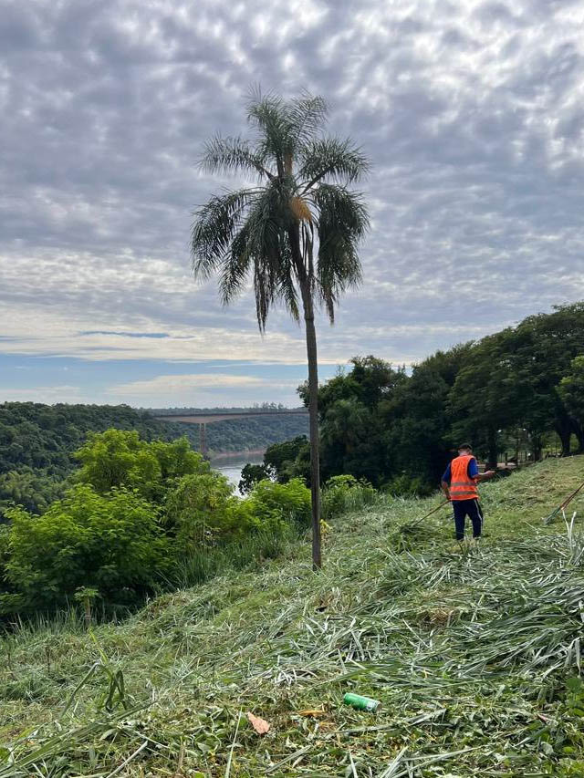AGENCIA MISIONES.UNO | La Municipalidad de Puerto Iguazú lleva adelante trabajos de parquización y mantenimiento en la Costanera Juan Tito Motta, con el objetivo de poner en valor uno de los principales espacios públicos de la ciudad.
