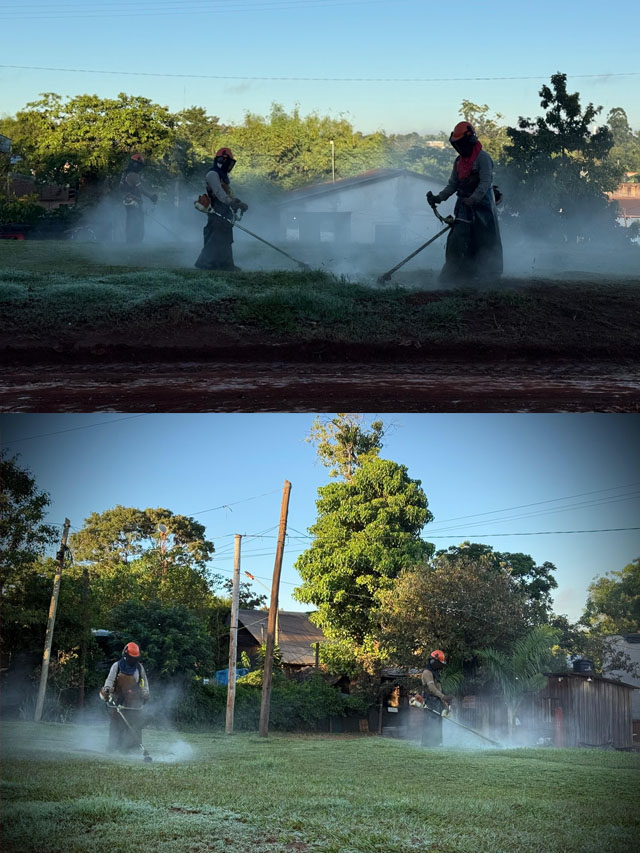 AGENCIA MISIONES.UNO | El equipo municipal de Parquización de Puerto Iguazú llevó adelante trabajos de mantenimiento en el barrio Bicentenario, con tareas de corte de pasto y limpieza en espacios públicos.