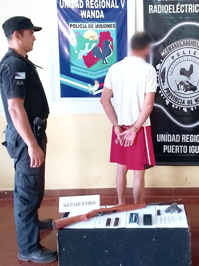 AGENCIA MISIONES.UNO | Un hombre de 57 años fue detenido en la localidad de Wanda luego de que su esposa lo denunciara por amenazarla de muerte con un arma de fuego y realizar disparos en el patio de la vivienda durante una discusión. La Policía secuestró dos armas y municiones en el domicilio.